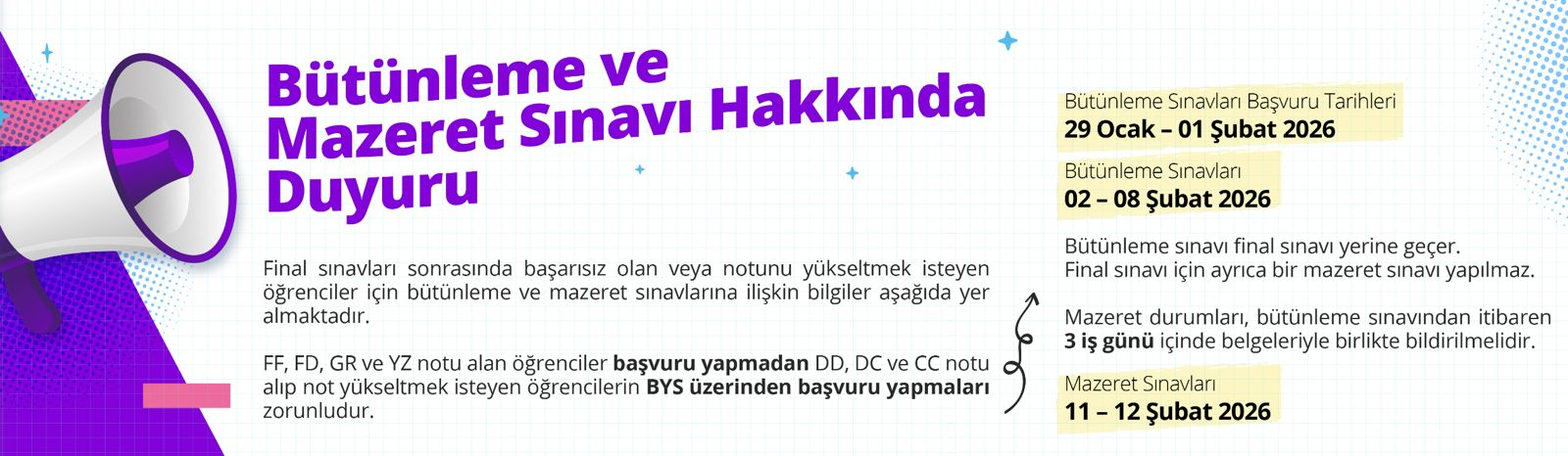 2025-2026 ÖĞRETİM YILI GÜZ YARIYILI BÜTÜNLEME SINAV PROGRAMLARI