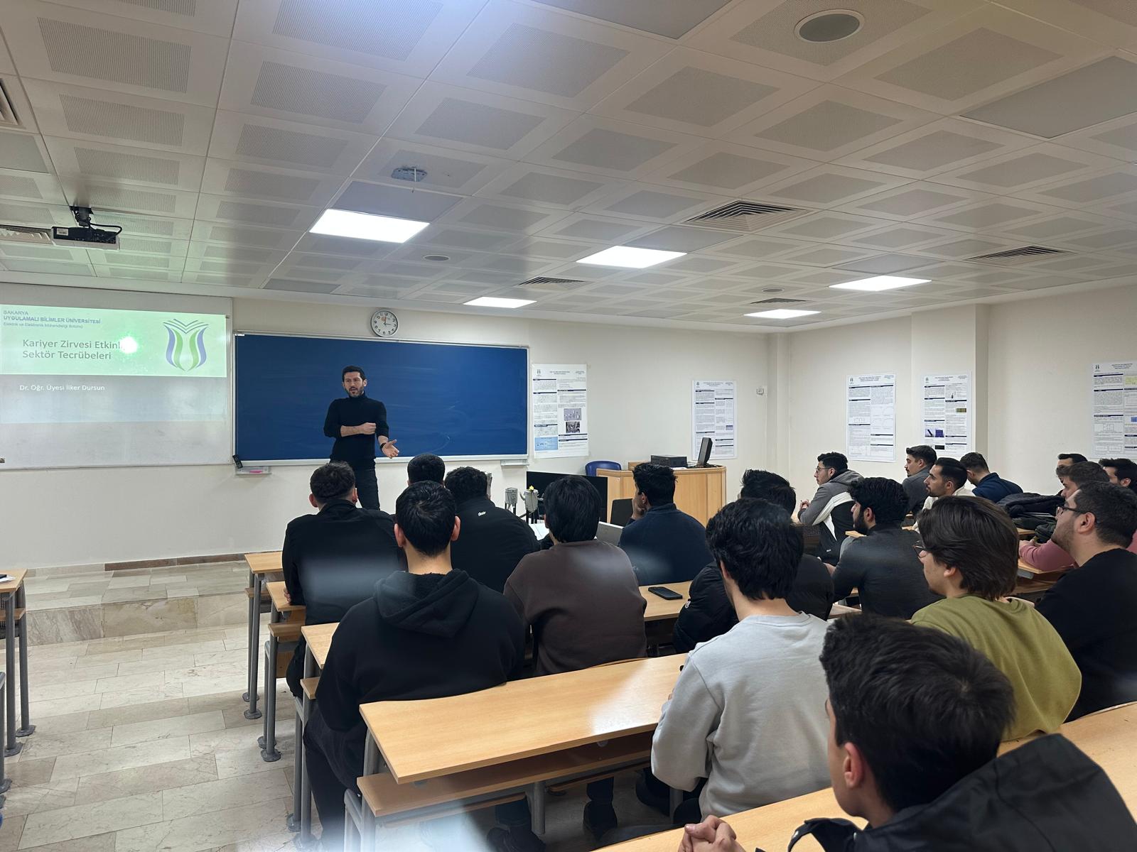 Etkinlikte; sektör deneyimleri, kariyer planlaması, mezuniyet sonrası süreçler ve mesleki gelişim konularında önemli bilgiler aktarılırken, öğrencilerimizin soruları da birebir yanıtlandı. Öğrencilerimizin mesleki farkındalıklarını artırmayı hedefleyen bu etkinliğin verimli geçtiğine inanıyoruz.