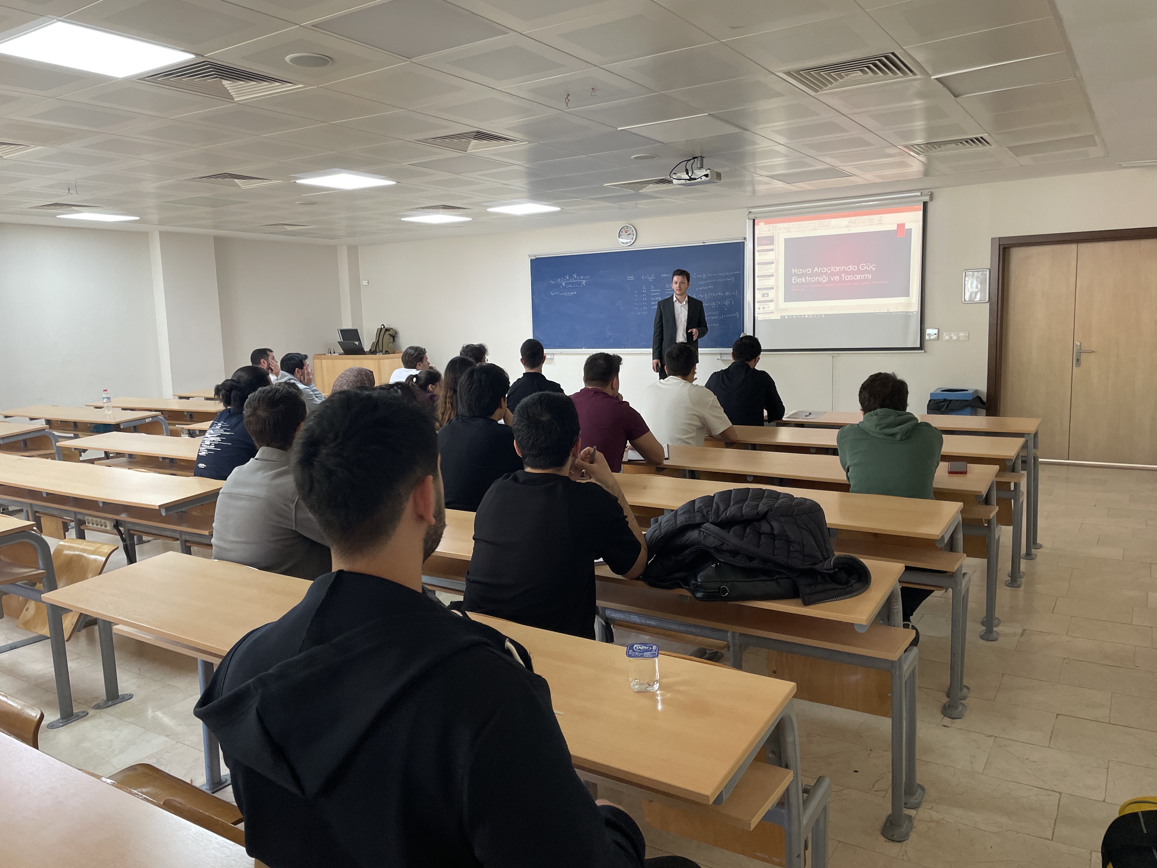 📌 14 Mayıs 2025 Çarşamba günü, Pavelsis Avionics firmasında Donanım Tasarım Mühendisi olarak görev yapan Hamza Göksu, “Hava Araçlarında Güç Elektroniği Sistemleri ve Tasarımı” başlıklı sunumuyla sektör tecrübelerini öğrencilerimizle paylaştı.