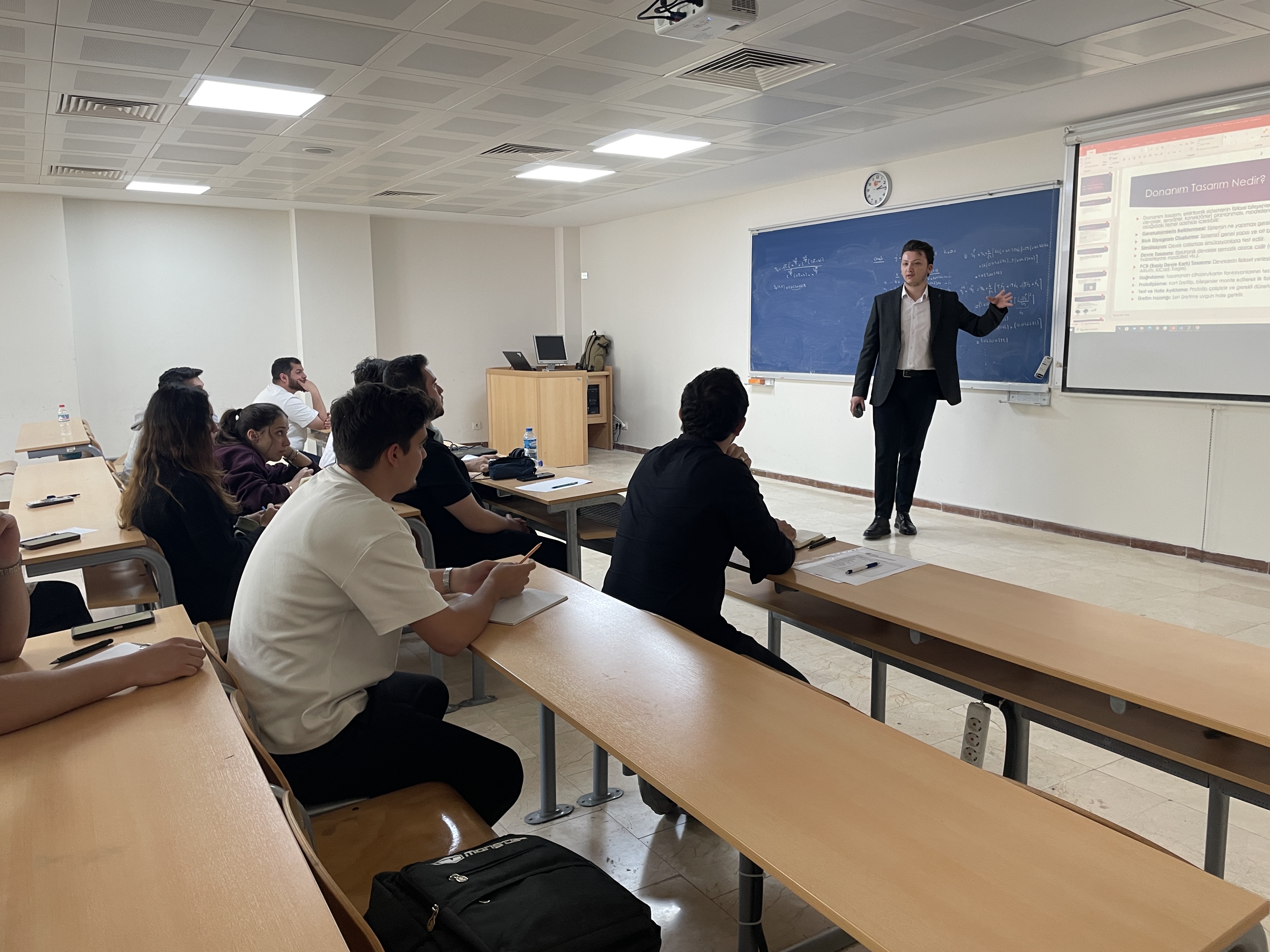 📌 21 Mayıs 2025 Çarşamba günü ise Netvar Elektronik firmasından Donanım Tasarım Mühendisi Mustafa Hızlı, “DC-DC Dönüştürücülerin Donanım Tasarımı: Endüstriyel Bakış Açısı” konulu sunum gerçekleştirdi.