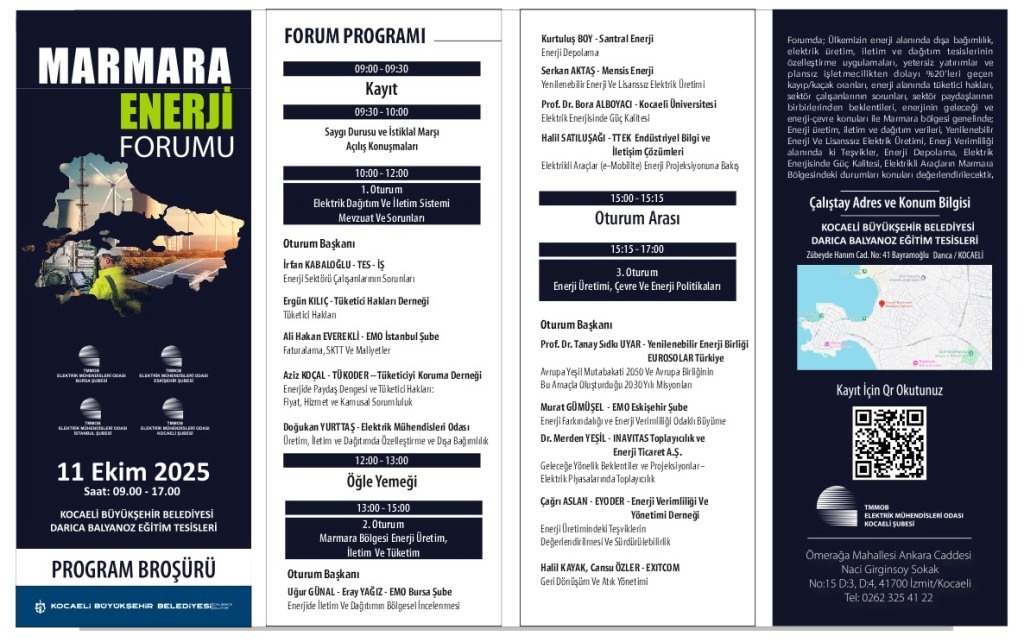 Elektrik Mühendisleri Odası (EMO) Kocaeli Şubesi tarafından düzenlenen Marmara Enerji Forumu, 11 Ekim tarihinde Darıca’da gerçekleştirilecektir.