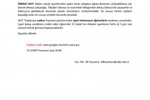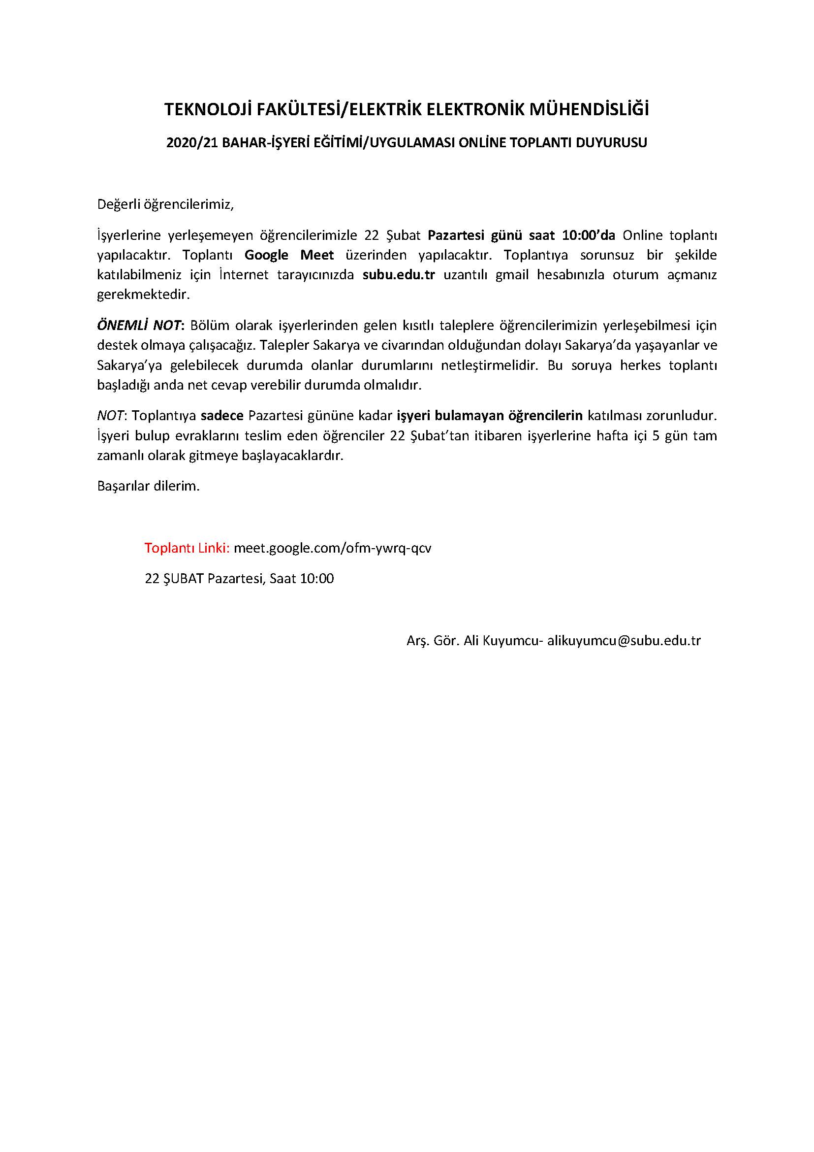 2020/21 BAHAR-İŞYERİ EĞİTİMİ/UYGULAMASI ONLİNE TOPLANTI DUYURUSU
