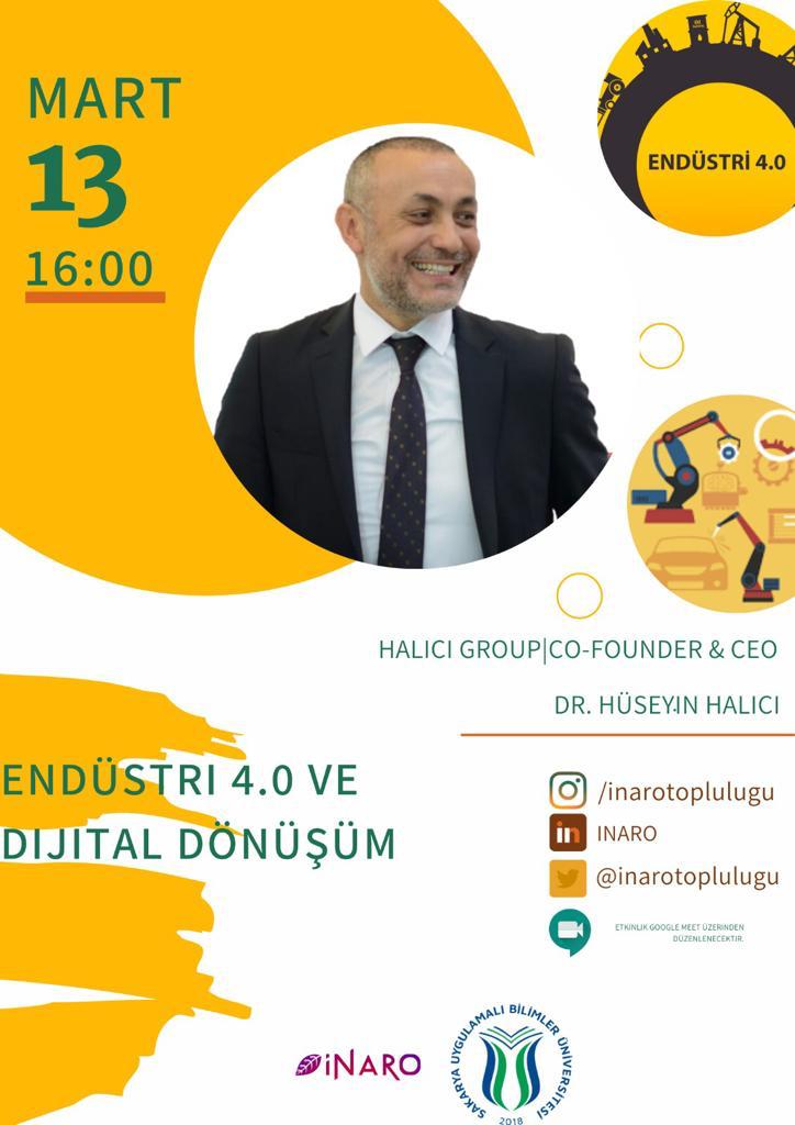 13 Mart 2021 saat 16:00’ da düzenleyecek olan Endüstri 4.0 ve Dijital Dönüşüm konulu etkinliği Halıcı Group Ceo’ su Dr. Hüseyin Halıcı’ nın katılımıyla gerçekleştirilecektir. Etkinliğe herkes davetlidir.