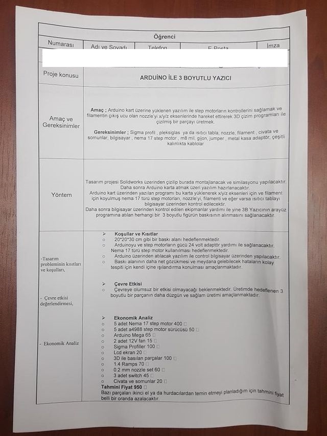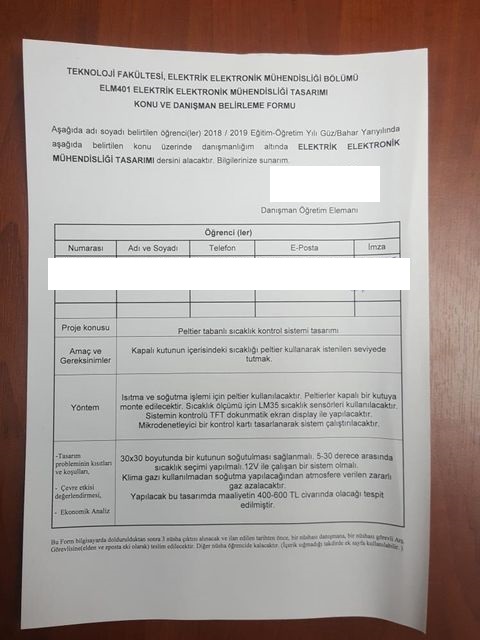 Not: Formlar eksiksiz bir şekilde yeni danışman atanacak öğrenciler tarafından doldurulmalı özellikle tasarım kısıtları için sayısal değerler verilmeye çalışılmalıdır. Örnek tasarım formları ekte verilmiştir.