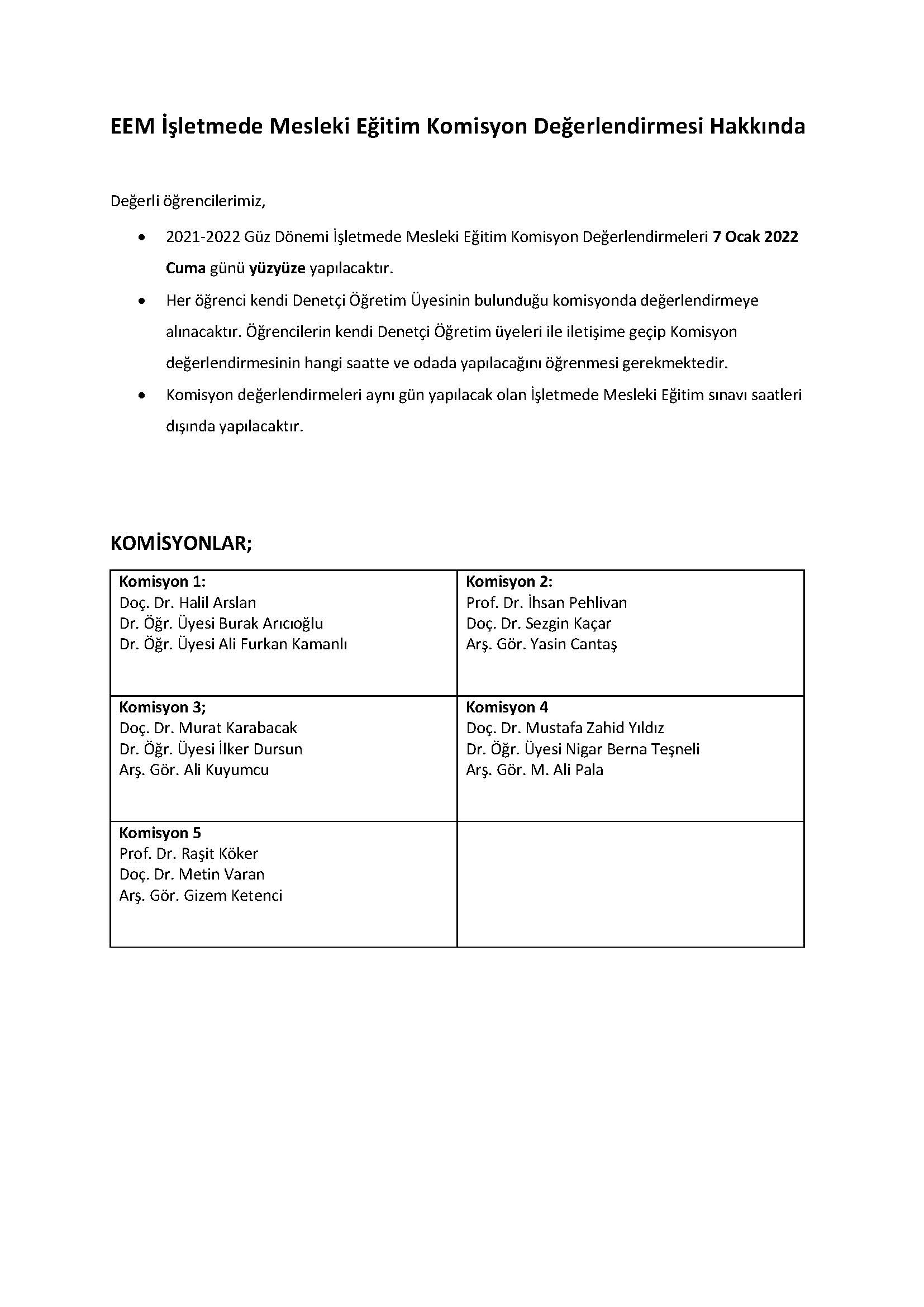 EEM İSLETMEDE MESLEKİ EĞİTİM KOMİSYON DEĞERLENDİRMESİ HAKKINDA