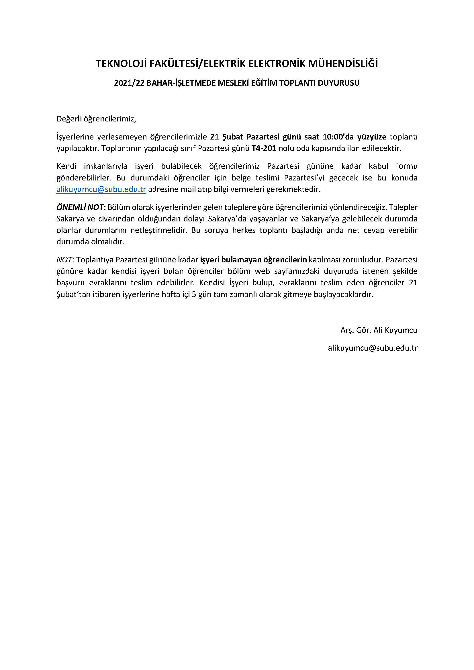 2021-2022 BAHAR İŞLETMEDE MESLEKİ EĞİTİM TOPLANTISI