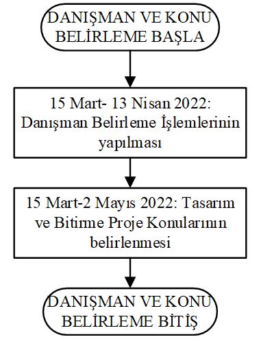 2022-2023 Öğretim Yılı GÜZ döneminde EEM TASARIMI ve/veya BİTİRME ÇALIŞMASI dersini alacak öğrencilerin danışman belirlemeleri ve konu belirme süreçleri başlamıştır. Öğrencilerin ilk olarak danışman ve konu belirlemeleri beklenmektedir.